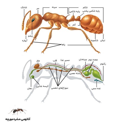 مورچه ها موجوداتی کوچک و اجتماعی هستند که بدن آن ها از سه بخش اصلی تشکیل شده است: سر، سینه و شکم. سر مورچه ها معمولاً بزرگ و مجهز به فک های قوی برای حمل اشیا و غذا یا دفاع از خود است. شاخک های بلند و زانویی شکل آن ها ابزاری حساس برای شناسایی مواد غذایی، برقراری ارتباط با سایر مورچه ها و یافتن مسیر است